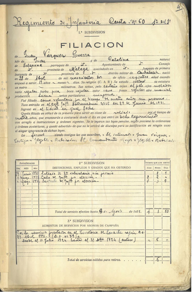 Juan Vázquez, de Estepona, murió en 9 de septiembre de 1925, siendo sargento, cuando la guerra con Marruecos, en Kudia Tahar. Y el Ayuntamiento de Estepona, en su sesión del 2 de agosto de 1927 acordó la variación del nombre de la calle Caridad, por el de Sargento Juan Vázquez “muerto gloriosamente en campaña...”. Debió haberse elegido una vía nueva, porque el nombre de C/ Caridad estaba muy arraigado y, como a veces sucede, el nuevo nombre no es recogido en uso por la población, acostumbrada al nombre tradicional.